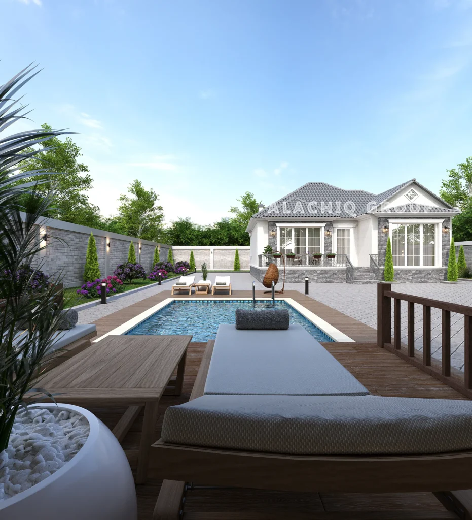 Burada hər detal sizi öz evinizdə hiss etdirmək üçün düşünülüb – hovuzun sərinliyi, landşaftın ve besedkanin gözəlliyi memarlığın incəliyi ilə bir arada.